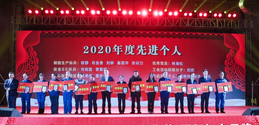 ? ? 慶典上,為答謝長(zhǎng)期以來(lái)關(guān)心、支持南昌礦機(jī)發(fā)展的廣大合作伙伴與為企業(yè)作出貢獻(xiàn)的優(yōu)秀員工,特頒發(fā)了“卓越合作伙伴獎(jiǎng)”、“特殊貢獻(xiàn)退休員工獎(jiǎng)”、“卓越貢獻(xiàn)員工獎(jiǎng)”、2020年度先進(jìn)團(tuán)隊(duì)、2020年度先進(jìn)個(gè)人等獎(jiǎng)項(xiàng)。