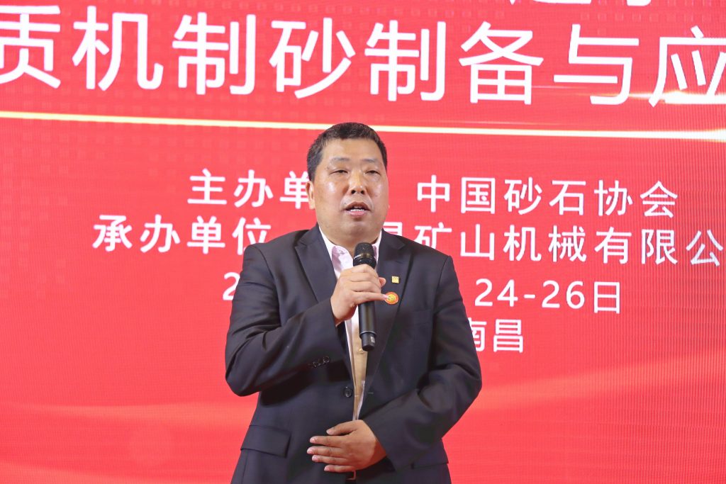 09? ?陜西煤化新材料集團(tuán)有限責(zé)任公司副總經(jīng)理李剛從機(jī)制砂石生產(chǎn)工藝和設(shè)備方面發(fā)表了意見。由于企業(yè)業(yè)主的側(cè)重點(diǎn)不同,關(guān)注點(diǎn)不同,很多企業(yè)為了設(shè)備省小錢,最后虧了大錢。企業(yè)不僅要解決經(jīng)濟(jì)效益、長(zhǎng)遠(yuǎn)效益,更要解決社會(huì)效益。李剛表示,我們應(yīng)該感謝南昌礦機(jī)和中國砂石協(xié)會(huì),南昌礦機(jī)解決了砂石級(jí)配“斷檔”,砂石協(xié)會(huì)解決了人才“斷檔”和思想“斷檔”問題,推動(dòng)了行業(yè)高質(zhì)量發(fā)展。