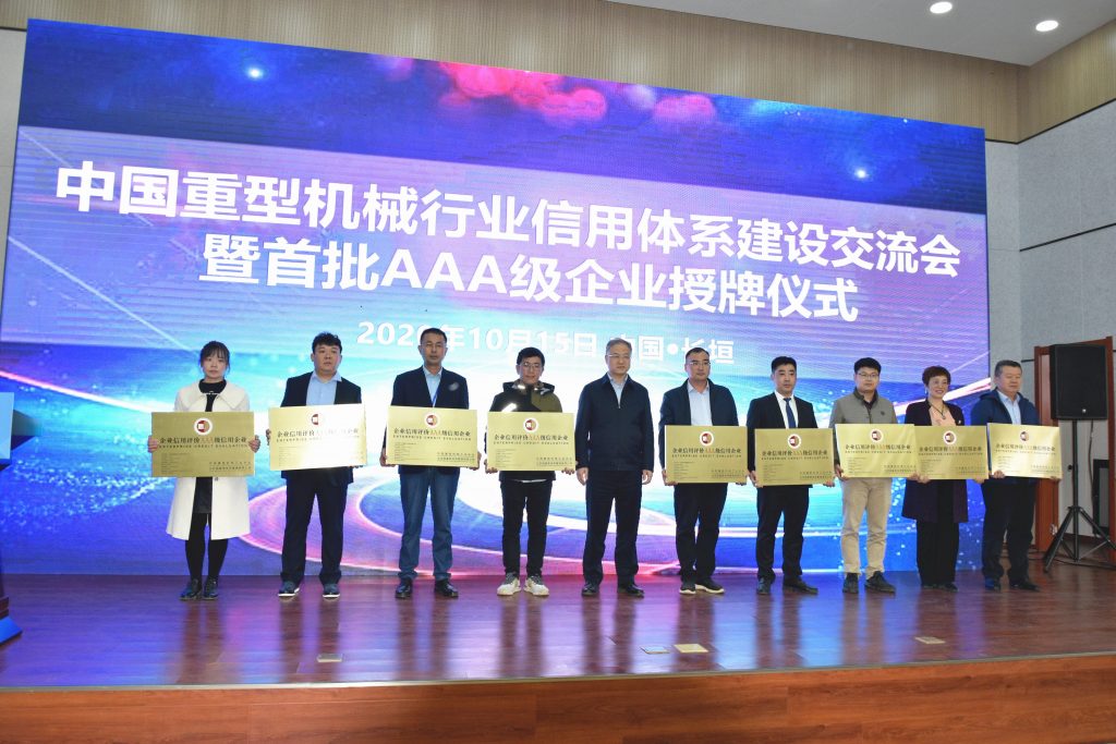 ? ? 10月15日,中國(guó)重型機(jī)械行業(yè)信用體系建設(shè)交流會(huì)暨首批AAA級(jí)企業(yè)授牌儀式在河南省長(zhǎng)垣市舉辦。中國(guó)重型機(jī)械工業(yè)協(xié)會(huì)理事長(zhǎng)韓珍堂,中國(guó)重型機(jī)械工業(yè)協(xié)會(huì)常務(wù)副理事長(zhǎng)景曉波,中國(guó)重型機(jī)械工業(yè)協(xié)會(huì)副理事長(zhǎng)兼秘書(shū)長(zhǎng)王繼生,中國(guó)商務(wù)信用聯(lián)盟秘書(shū)長(zhǎng)武興華,長(zhǎng)垣市委副書(shū)記、市長(zhǎng)趙軍偉等人出席會(huì)議。會(huì)上,南昌礦山機(jī)械有限公司(以下簡(jiǎn)稱“南昌礦機(jī)”)被評(píng)為中國(guó)重型機(jī)械工業(yè)協(xié)會(huì)首批AAA級(jí)信用企業(yè)。