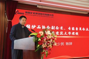 ? ? 中國砂石協(xié)會副會長、中國砂石協(xié)會砂石骨料技術(shù)研究中心主任宋少民代表中國砂石協(xié)會砂石骨料技術(shù)研究中心向南昌礦機(jī)對中國砂石行業(yè)的貢獻(xiàn)表示感謝,他指出,2018年開始南昌礦機(jī)就啟動了巖石加工屬性重要參數(shù)專用儀器的研發(fā)工作,通過行業(yè)專家組的驗(yàn)收和建議,目前經(jīng)過改進(jìn)的兩臺儀器呈現(xiàn)在我們面前,這是對砂石材料科學(xué)技術(shù)體系的完善,將為砂石加工制造裝備和工藝發(fā)展提供重要的支持,相關(guān)數(shù)據(jù)將為《砂石骨料巖石技術(shù)要求》標(biāo)準(zhǔn)的閾值確定發(fā)揮重要作用。