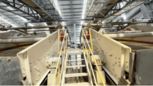 主要設備:采用南礦集團生產(chǎn)的HPF棒條給料機2臺、JC顎式破碎機2臺、CC單缸液壓圓錐破碎機3臺、2YKR除泥篩1臺、YKR水洗篩2臺、2YKR圓振動篩4臺、3YKR圓振動篩2臺和GZG振動給料機4臺。其中,用于中碎的CC單缸液壓圓錐破碎機裝機功率為450kW,通過量達1000噸/小時以上。