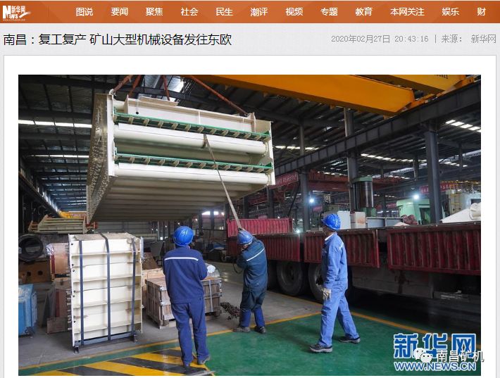 2020年2月27日,新華社記者到訪南昌礦山機(jī)械有限公司(以下簡(jiǎn)稱“南昌礦機(jī)”),并對(duì)其通過(guò)“抗疫”與“生產(chǎn)”兩手抓,從而快速實(shí)現(xiàn)首批海外訂單交付做了報(bào)道。南昌礦機(jī)生產(chǎn)的3臺(tái)ZKR直線振動(dòng)篩及1臺(tái)BS系列香蕉篩,已于當(dāng)日通過(guò)生產(chǎn)技術(shù)及質(zhì)檢部門對(duì)設(shè)備出廠前的認(rèn)真仔細(xì)檢查工作,并順利完成裝車,啟程發(fā)往塞爾維亞交付客戶。