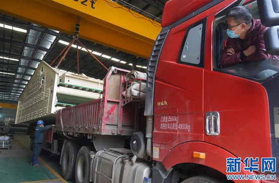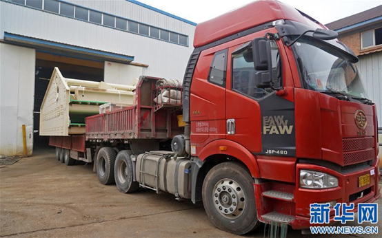 2月27日,裝載著出口篩分機(jī)設(shè)備的貨車駛出工廠。