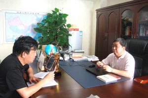 李順山董事長(zhǎng)(右一)接受本報(bào)記者采訪