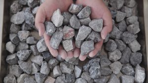 該生產(chǎn)線原料為白云巖,石料通過(guò)礦車運(yùn)送到給料機(jī)上,給料機(jī)再將石料送至JC顎式破碎機(jī)進(jìn)行粗碎。南昌礦機(jī)生產(chǎn)的JC顎式破碎機(jī)具有對(duì)稱破碎腔、楔塊排礦口調(diào)整系統(tǒng)和可靠的重型動(dòng)顎總成,可輕松實(shí)現(xiàn)高產(chǎn)量、大破碎比、低磨耗及大進(jìn)料粒度。