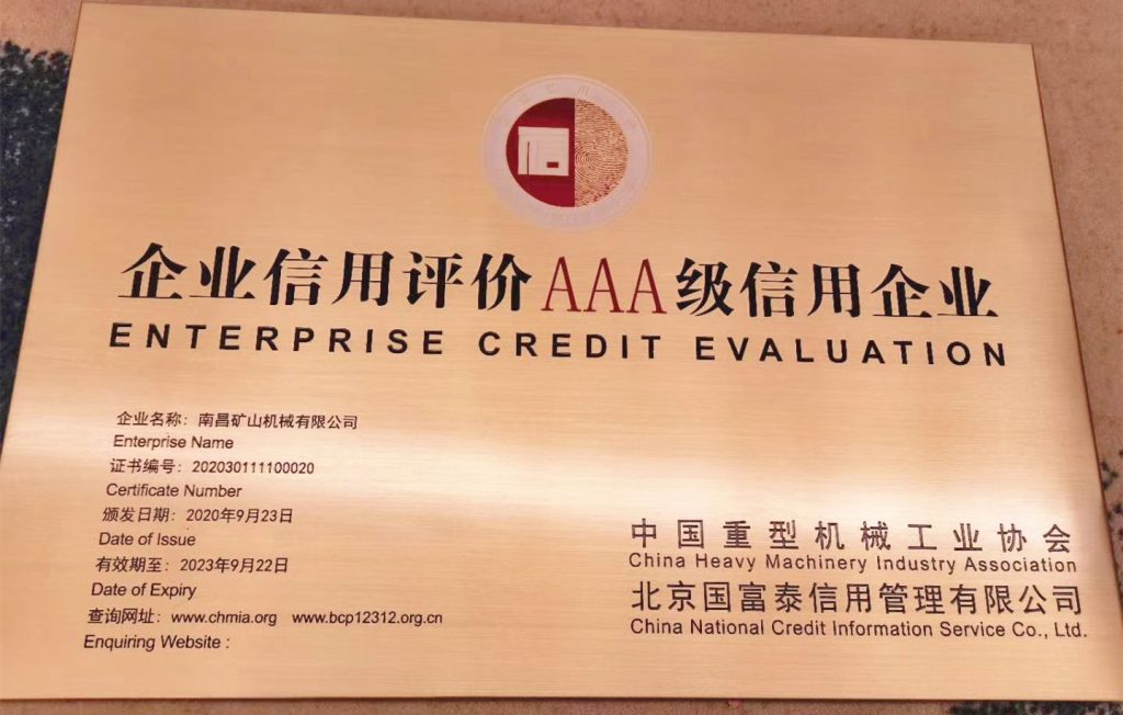 南昌礦機(jī)榮獲“企業(yè)信用評(píng)價(jià)AAA級(jí)信用企業(yè)”