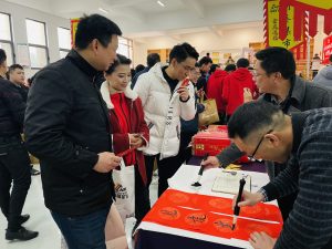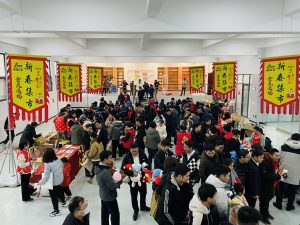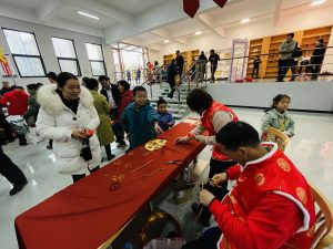 集市現(xiàn)場遍布中國紅,濃濃的年味撲面而來?!跋灿T”攤位前,書法老師現(xiàn)場揮毫潑墨,一副副飽含祝福與喜慶的對聯(lián)躍然紙上,一個個金色的“?!弊殖錆M美好的寓意,大家領(lǐng)到了自己中意的春聯(lián),喜笑顏開;“飾飾如意”、“欣欣向絨”攤位備受喜愛,大家對精心準(zhǔn)備的禮品愛不釋手;“吃貨”們則被“幸福味道”攤位吸引,極具江西特色的特產(chǎn)小吃極受歡迎;“編福送財”攤位上,南礦才華滿溢的員工正根據(jù)需求飛快編織手工藝品;“快樂套圈圈”、“拾光”、“福滿窗”等攤位也人氣十足,在歡快的歌聲中,四處洋溢著歡樂和喜悅,其樂融融。